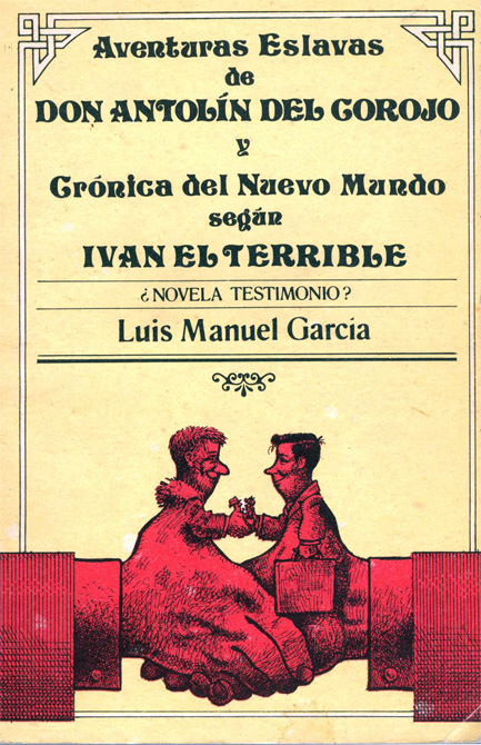 Luis Manuel García Méndez; Aventuras eslavas de Don Antolín del Corojo y crónica del Nuevo Mundo según Iván el Terrible (novela); Casa Editora Abril; La Habana, Cuba, 1989. 231 pp. / Zamorskie pojozhdeniia dona Antolina iz Korojo i otkrytie Novogo Sveta slavianinom: roman. (en ruso); Molodaia gvardiia; Moskva, Rusia, 1990. 220 pp. «Premio La Rosa Blanca de la UNEAC 1989»